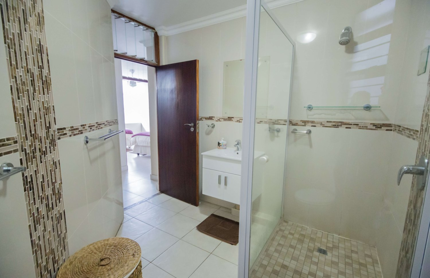 There is a queen size bed in the main bedroom, a double bed with single bunk bed, and separate single bed in the second bedroom, and 2 single beds in the third bedroom, comfortably sleeping 8. The main-en-suite has a shower and bath. The second bathroom has as spacious shower, toilet and a modern washbasin. Linen and bath towels are provided, but please bring your own beach towels. There are ceiling fans in all bedrooms as well as two de-humidifiers.