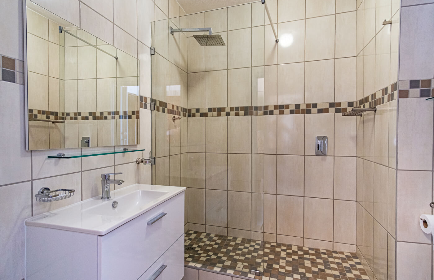 Undercover parking for one vehicle is available, as well as open parking for visitors and trailers in this secure complex. Communal braai facilities are at the swimming pool. There is a lift in complex which makes it accessible for wheelchairs, but please keep loadshedding in mind.