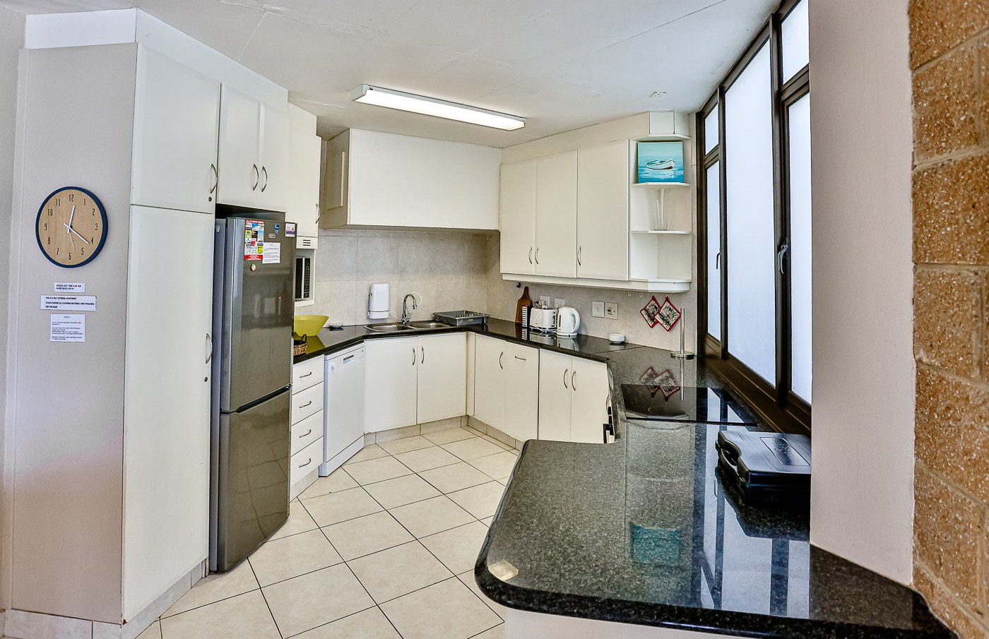 There is a top loader washing machine and tumble dryer in the guest bathroom. The large open plan kitchen/dining room is fully equipped with a fridge/freezer, stove, microwave, toaster, kettle, crockery and cutlery for 6 people as well as a dishwasher. There is a smart TV and HP DSTV and uncapped WiFi in the lounge. There is a stainless-steel charcoal braai on the furnished patio. There is covered parking for one vehicle, as well as an extra parking for guests. The complex also has a lovely kids friendly swimming pool.