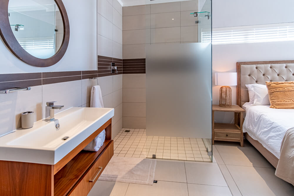 The interior design of this unit is only topped by the amazing sea views. The main bedroom which opens up directly onto the patio has an extra length king sized bed as well as en suite bathroom with a shower and bath. The second bedroom has an extra length queen sized bed and modern open plan en suite bathroom with a shower. The third bedroom has two single beds and a set of bunk beds and is serviced by the guest bathroom with a shower.