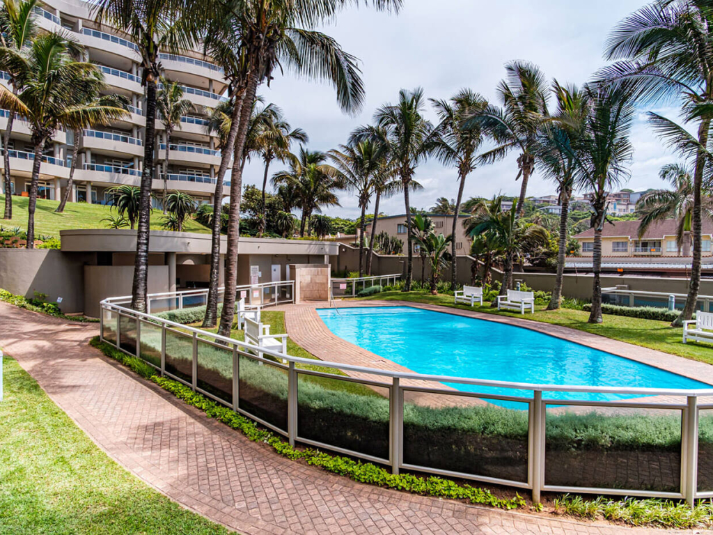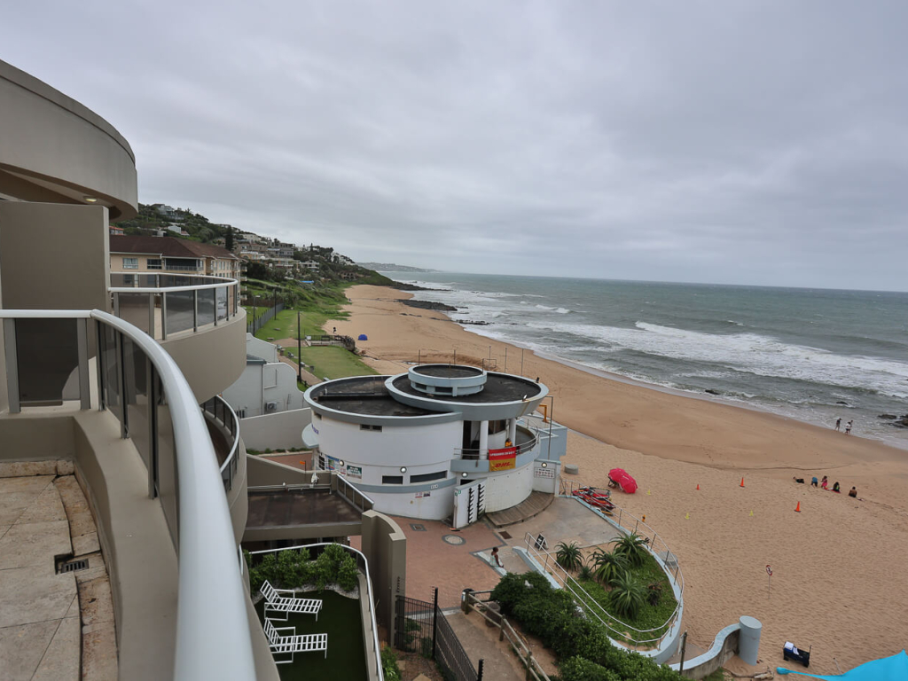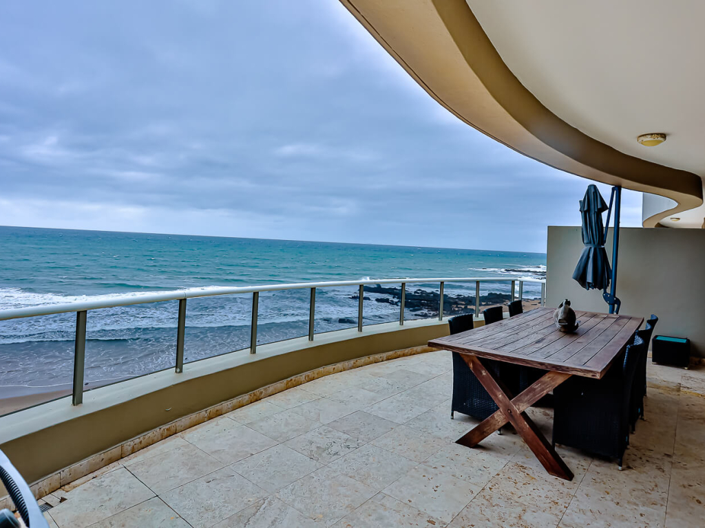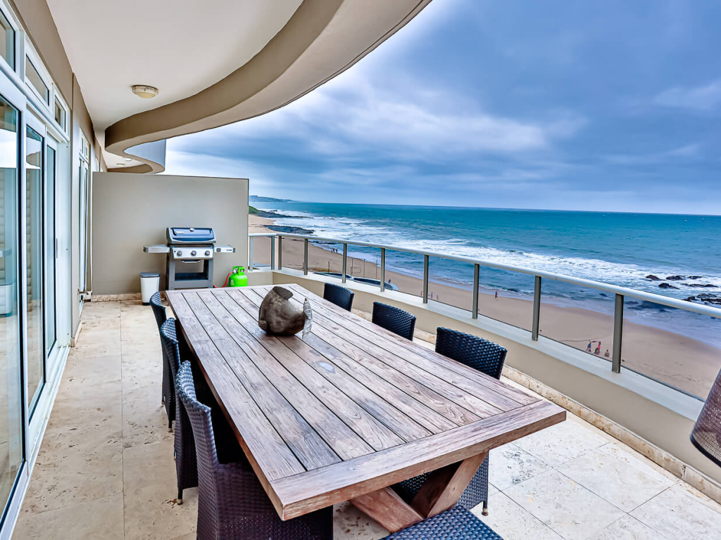 This exclusive, air conditioned, three-bedroom apartment is on the fourth floor of the upmarket complex, Ballito Manor. Access to the unit is through an automated double garage. The unit is situated on the main beach with spectacular beach and sea views from the spacious balcony.