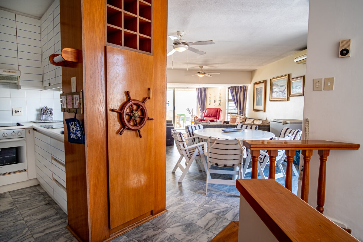 This 4-bedroom, 3-bathroom apartment with entrances on two levels, is right on the beach in front of the well-known “Grannies’ Pool” kids swimming beach and has spectacular, full beach and breaker sea views. The complex is located on the 3km long promenade that is ideal for scenic strolls along the beach.